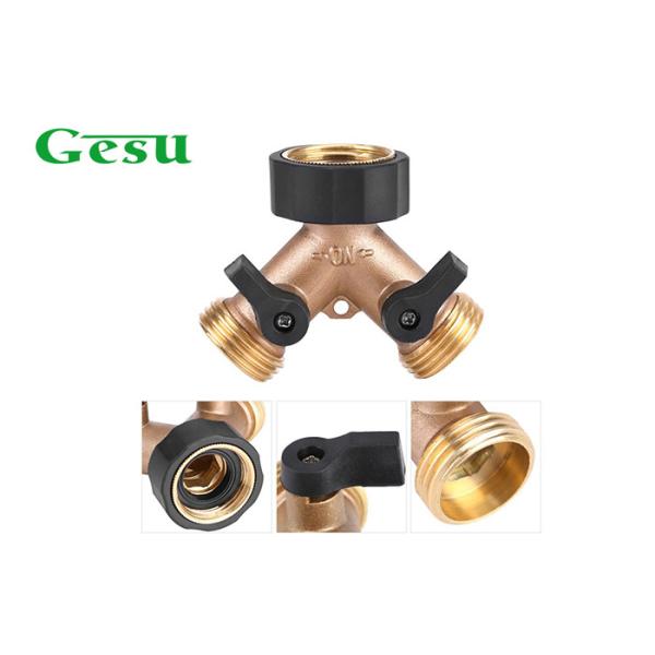 Solid Brass Body 2 Way Y Valve Garden Hose Connector Splitter with Comfort Grip