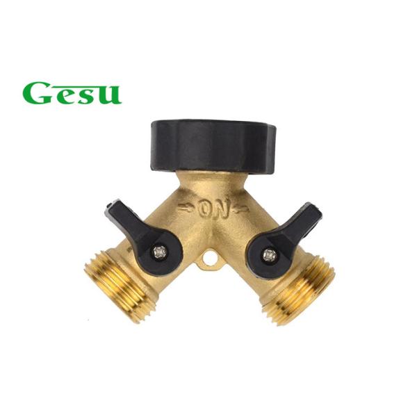 2 Way Solid Brass Y Valve Garden Hose Connector with Comfort Grip